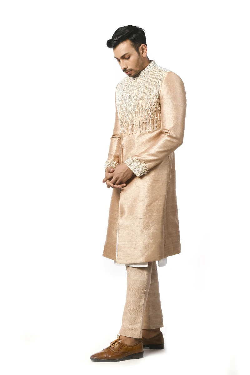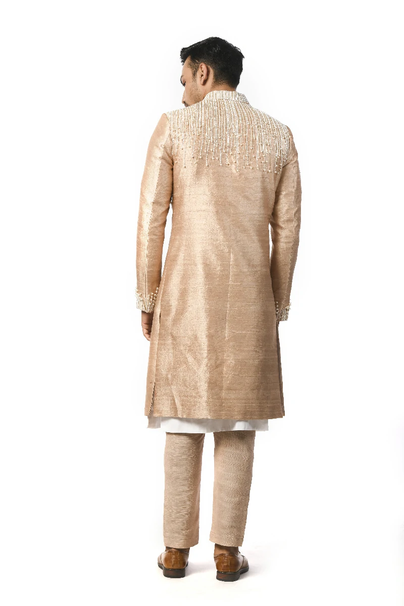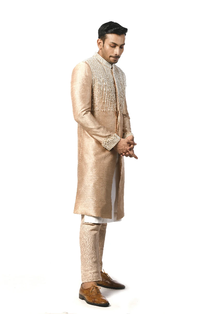 Embroidered Achkan, White Kurta With Churidar