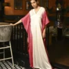 Embroidered And Shade Dyed Net Kaftan With Print On The Edges